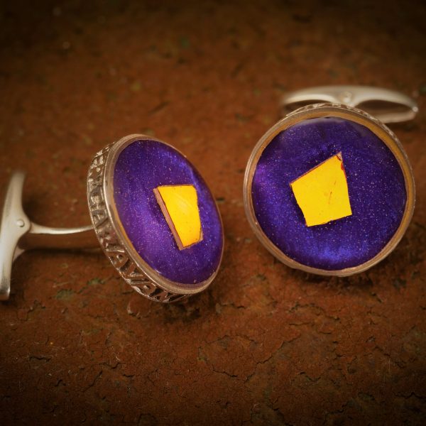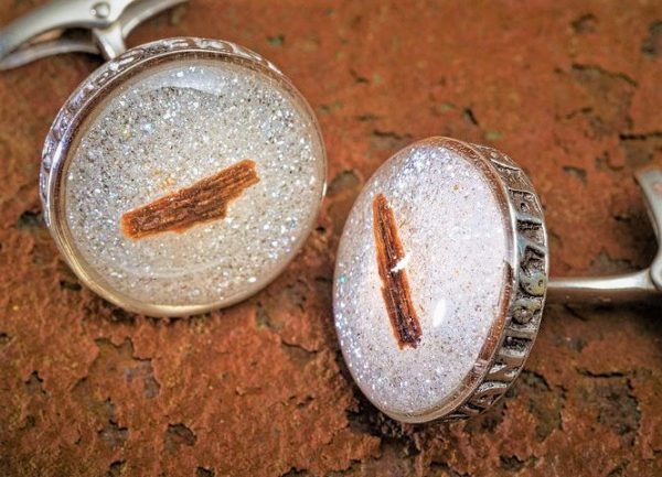 Original Fragments of the Sgt Pepper Gypsy Showman’s Caravan set within Sparkling Resin set with a Solid 925 Sterling Silver Cufflinks.
